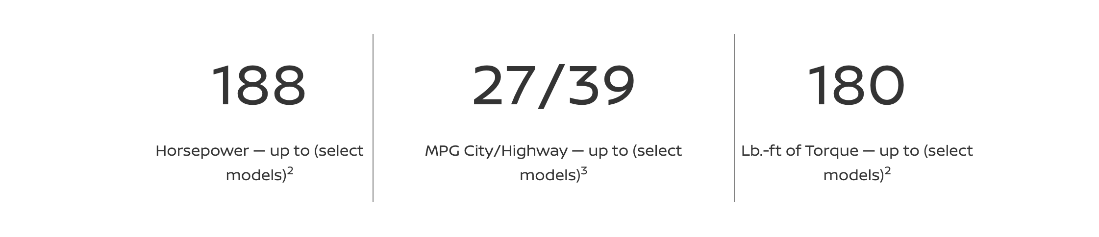 1.Price shown is Manufacturer’s Suggested Retail Price (MSRP) for base model trim. Altima SL AWD with Premium Paint shown priced higher at $35,255. MSRP excludes tax, title, license, options, and destination and handling charges. Dealer sets actual price. Some color, package, and option selections may include, exclude, or require the purchase of additional options and packages. Some options shown may not be available on all trims. See retailer for details. 2. 188 hp and 180 lb-ft of torque on 2.5-L FWD models. 182 hp and 178 lb-ft of torque on 2.5-L AWD models. 3. 2025 EPA Fuel Economy Estimates. 27 City MPG / 39 Highway MPG / 32 Combined MPG for Altima® S, SV FWD. 27 City MPG / 37 Highway MPG / 31 Combined MPG for Altima® SR, SL FWD. 25 City MPG / 34 Highway MPG / 28 Combined MPG for Altima® SV, SR, SL AWD. Actual mileage may vary with driving conditions. Use for comparison only. 4. Intelligent All-Wheel Drive cannot prevent collisions or provide enhanced traction in all conditions. Always monitor traffic and weather conditions. 5. ProPILOT Assist, ProPILOT Assist 1.1, and ProPILOT Assist with Navi-link cannot prevent collisions. It is the driver’s responsibility to be in control of the vehicle at all times. Always monitor traffic conditions and keep both hands on the steering wheel. System operates only when lane markings are detected. Does not function in all weather, traffic and road conditions. System has limited control capability and the driver may need to steer, brake or accelerate at any time to maintain safety. See Owner’s Manual for safety information. 6. Feature availability is dependent on vehicle model year, model, trim level, packaging and options. Compatible connected device and wireless network may be required. Refer to connected device’s owner’s manual for details. Late availability for some features Driving is serious business and requires your full attention. Only use features and connected devices when safe and legal to do so. Some features, including automatic crash notification and SOS, are dependent upon the telematics device being in operative condition, its ability to connect to a wireless network, compatible wireless network availability, navigation map data and GPS satellite signal receptions, the absence of which can limit or prevent the ability to reach Customer Care or receive support. GPS mapping may not be detailed in all areas or reflect current road status. Never program GPS while driving. Only use Remote Engine Start and Remote Horn features in accordance with any laws, rules or ordinances in effect in your vehicle’s location. Cellular network not available in Guam, Puerto Rico, U.S. Virgin Islands, Saipan or American Samoa. Some services and features are provided by and dependent on third party service providers and not Nissan. Should service provider terminate or restrict service or features, service or features may be suspended or terminated without notice or with no liability to Nissan or its partners or agents. Services and features may require compatible cellular network provided by independent companies not within Nissan or its partners’ or agents’ control. Cellular network signal strength may vary and may not be available in all areas or at all times. Services and features may not function if cellular network is unavailable, restricted, or terminated. Nissan and its partners or agents are not responsible for associated costs or other third party changes that may be required for continued operation due to cellular network unavailability, restriction, or termination (including equipment replacements/upgrades, if available, or roaming charges on alternative networks). Technology is evolving, and changes by independent companies are not within Nissan’s or its partners’ or agents’ control. NISSANCONNECT SERVICES (applies to vehicles so equipped): Enrollment, owner consent, personal identification number (PIN), and subscription agreement may be required to receive full suite of features and services. Trial included with new vehicle purchase. Consumer activation of NissanConnect Services package required. Trial periods (if applicable) begin on the date of vehicle purchase or lease of a new Nissan. Trial periods and feature availability may be subject to change at any time and may be subject to early termination without notice. Required subscriptions may be sold separately for each available feature or service after trial period ends, and may continue until you call service provider to cancel. Installation costs, one-time activation fee, other fees and taxes may apply. Fees and programming subject to change. Feature may be subject to age restrictions in some areas. Subscriptions governed by service provider’s subscription agreement, terms and conditions and privacy statements available at service provider’s website. Text rates or data usage may apply. NissanConnect with WiFi terms and conditions of subscriber agreement apply. Trial is included with vehicle purchase on equipped new Nissan vehicles. Once your vehicle has exceeded the coverage parameters of the roadside assistance benefits included with your vehicle purchase, you will be responsible for any charges incurred by obtaining roadside assistance for your vehicle. For complete information concerning warranty coverage, conditions and exclusions, please see your Nissan dealer and read the Warranty Information Booklet. The Nissan names, logos and slogans are trademarks owned by or licensed to Nissan Motor Co. Ltd. or its North American subsidiaries. Other trademarks and trade names are those of their respective owners. For important safety information, system limitations, and additional operating and feature information, see dealer, owner’s manual, or www.NissanUSA.com/connect/legal. 7. Driving is serious business and requires your full attention. If you have to use the connected device while driving, exercise extreme caution at all times so full attention may be give