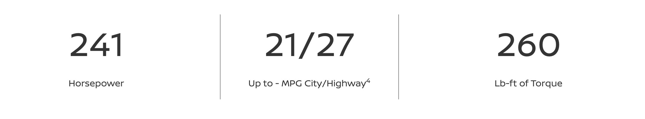 4 2025 EPA Fuel Economy Estimates. 21 City MPG / 27 Highway MPG / 23 Combined MPG for Murano®. Actual mileage may vary with driving conditions. Use for comparison only.